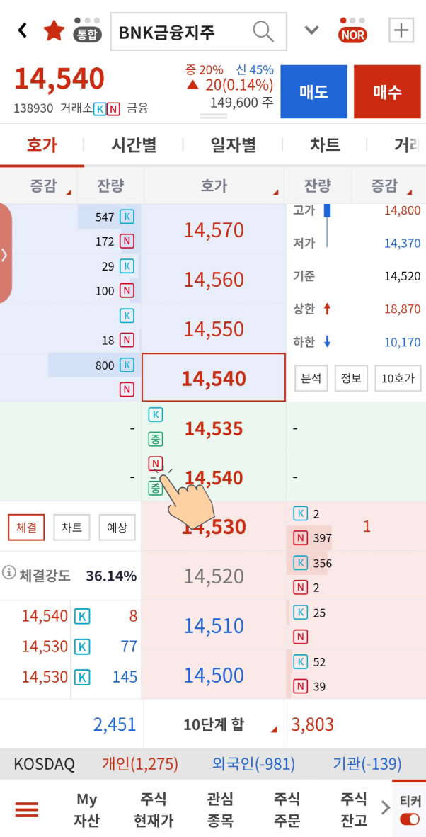 거래소 선택에 따라 각 거래소별 및 KRX, NXT 두 거래소의 호가 및 시세 정보를 확인할 수 있습니다.